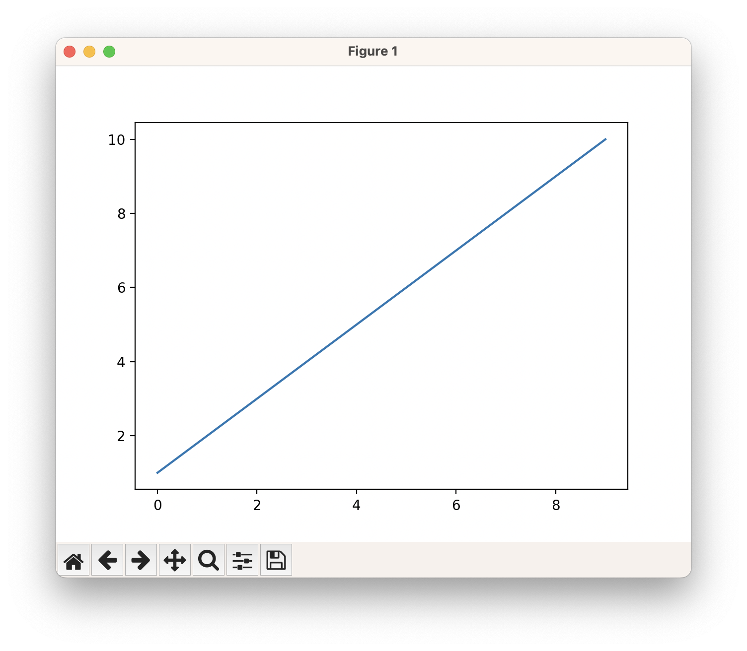 Matplotliob을 사용하여 플롯하려면 plt.plot() 함수를 사용해야 하며, 이 함수는 플롯할 데이터를 지정하는 하나 이상의 인수를 사용한다. 예를 들어, 숫자 1부터 10까지의 단순 선 그림을 그리는 코드는 다음과 같다.