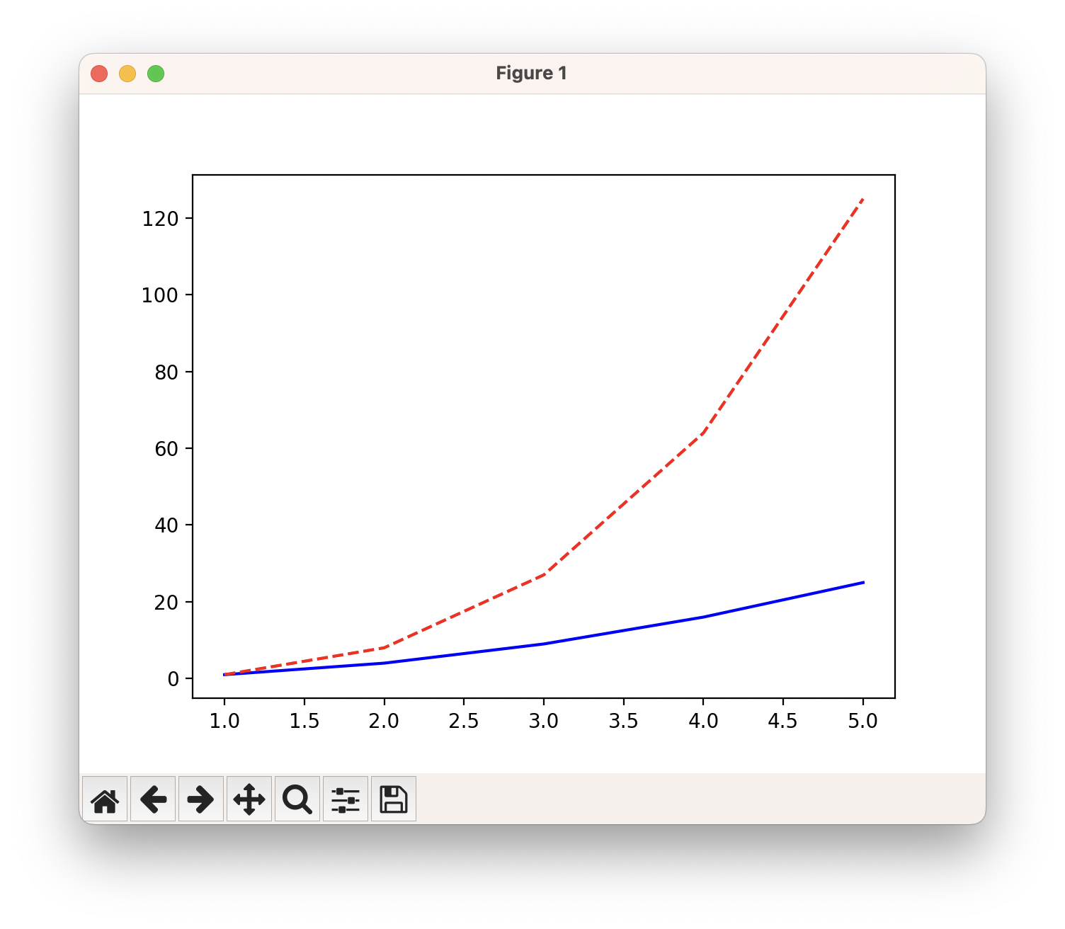 이렇게 하면 이전과 동일한 플롯이 생성된다. 축약 표기법은 색상, 마커 및 선 스타일의 세 부분으로 구성되어 있다. 색상은 파란색의 경우 'b', 빨간색의 경우 'r', 녹색의 경우 'g' 등 같이 한 글자로 지정할 수 있다. 마커는 점의 경우 '.', 원의 경우 'o', 별의 경우 '*' 등 같이 기호로 지정할 수 있습다. 선 스타일은 실선의 경우 '-', 점선의 경우 '--', 대시 점의 경우 '-.' 등과 같이 대시와 점의 시퀀스로 지정할 수 있다. matplotlib 설명서에서 이러한 인수에 대해 가능한 값의 전체 목록을 찾을 수 있다.