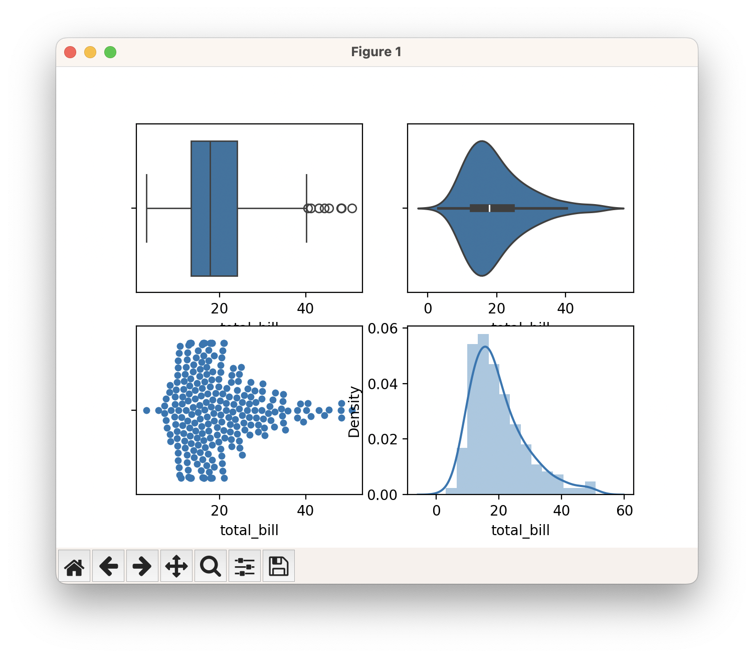 - Matplotlib와 Seaborn을 결합하여 서브플롯, 패싯 그리드 및 관계 플롯과 같이 더 복잡하고 상호작용적인 플롯 생성